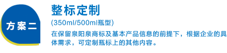 兩種定制方案靈活可選,為您量身定做企業(yè)專屬的長白山天然礦泉水,展現(xiàn)企業(yè)個性,彰顯企業(yè)文化,提升企業(yè)形象,助力商務成功!