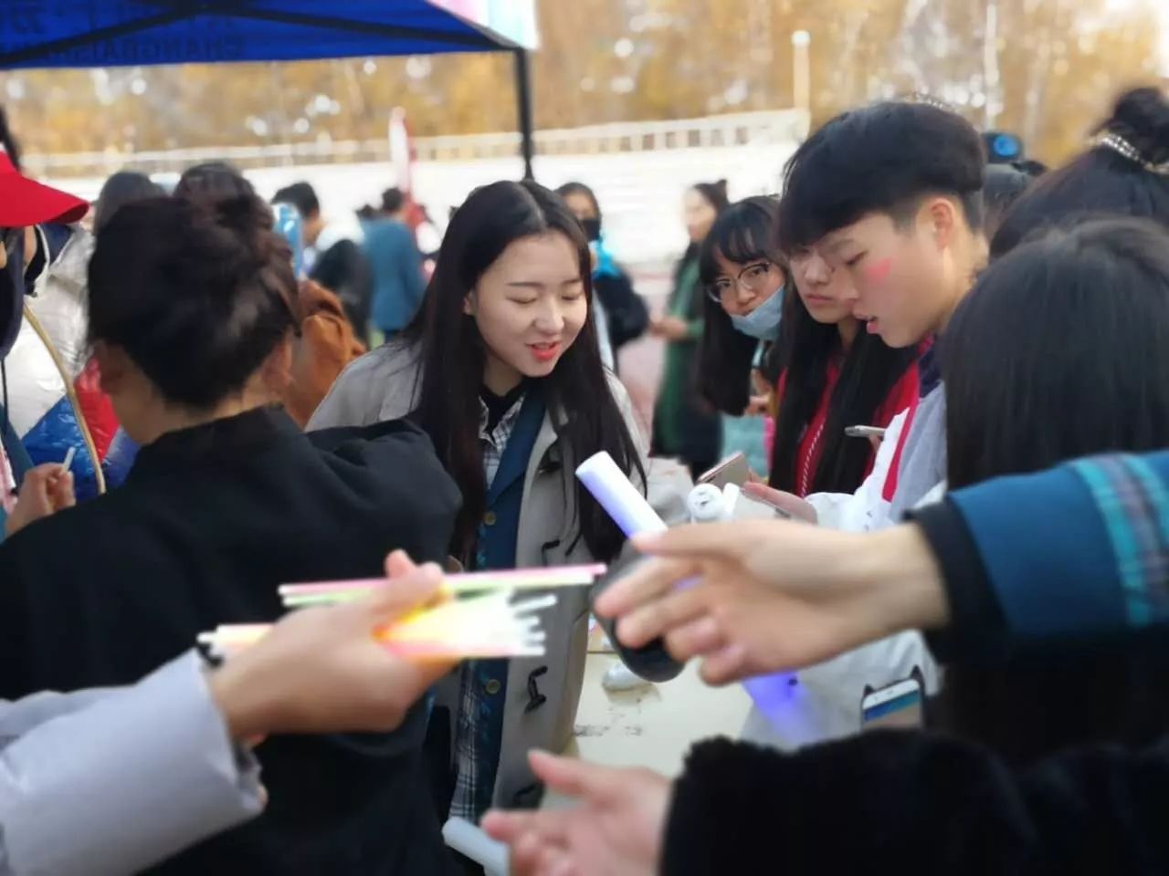 秋風(fēng)蕭瑟中,同學(xué)們早早的到達(dá)了活動(dòng)現(xiàn)場,簽名墻合影留念。